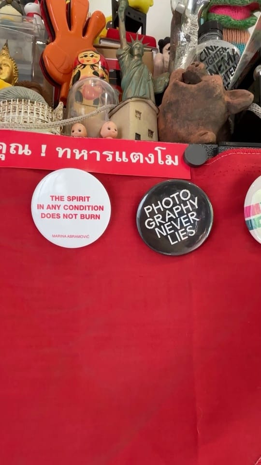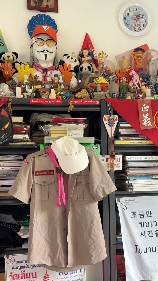 Details from his studio: Among them the boy scout uniform Siriphol wore in high school.
