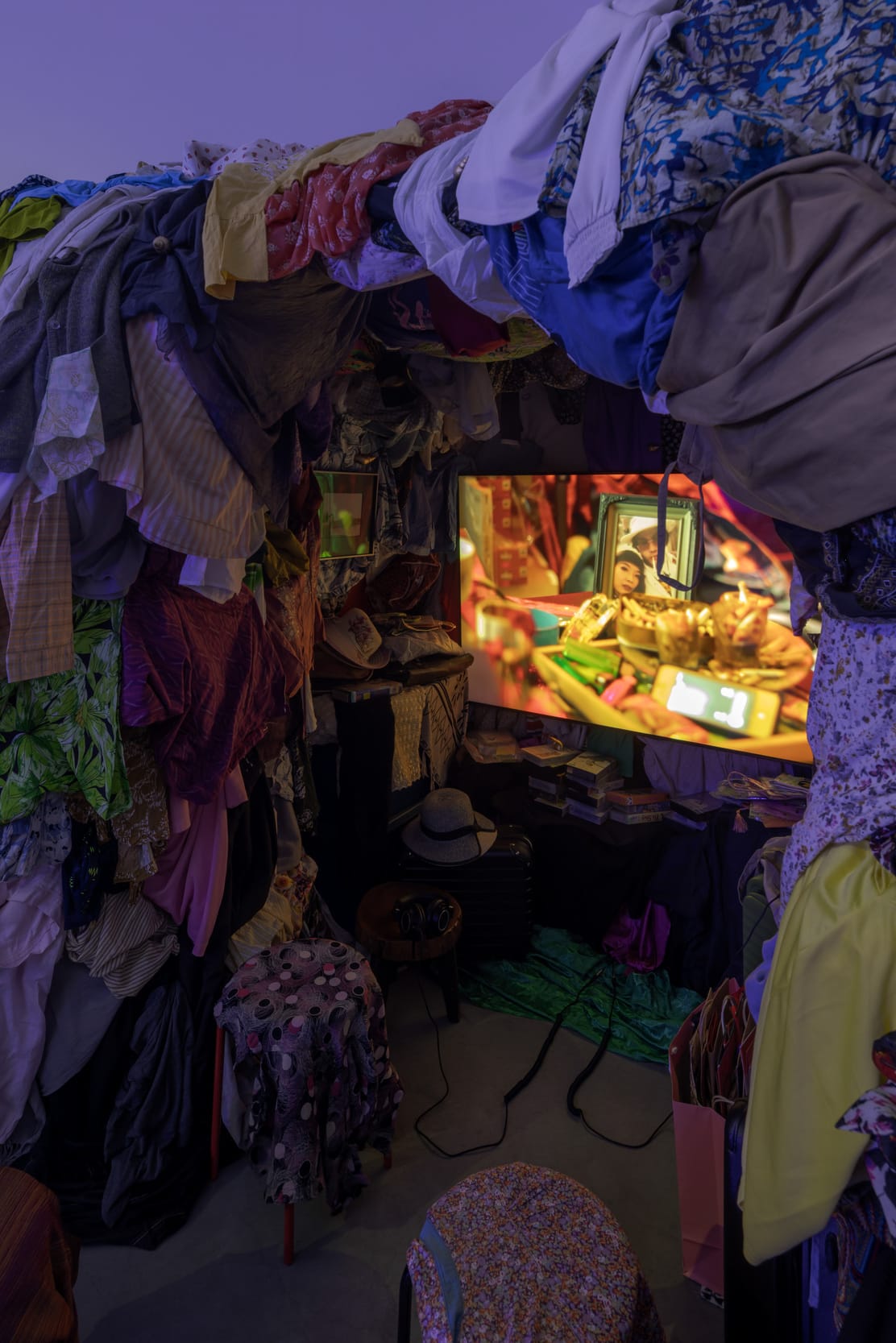 Siriphol sees his family's situation as a "case study" for the national divide between progressives and conservatives, that cuts through families across Thailand. The political divide in his personal life was also a central theme of his recent mini-retrospective, I a Pixel, We the People, at CityCity Gallery in Bangkok. At its core is a 24-episode video installation, which combines the artist's personal archives, family memories like home videos, footage from protests and his mother’s garments—housed in small, womb-like viewing spaces.