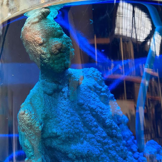 Jason deCaires Taylor: I’m always experimenting. I have a series of tanks in the studio, and I grow sculptures in different sizes in them. I use various types of metal pagination to try and achieve some of the blues that I’ve seen in nature. It’s important to mention that none of these works will ever go into the sea. It’s only for land exhibitions that I’ve tried to recreate these experiences. People are interested in collecting some of the work, and as I never take anything out of the sea that is living, I tried to replicate that process with small-scale maquette sculptures.